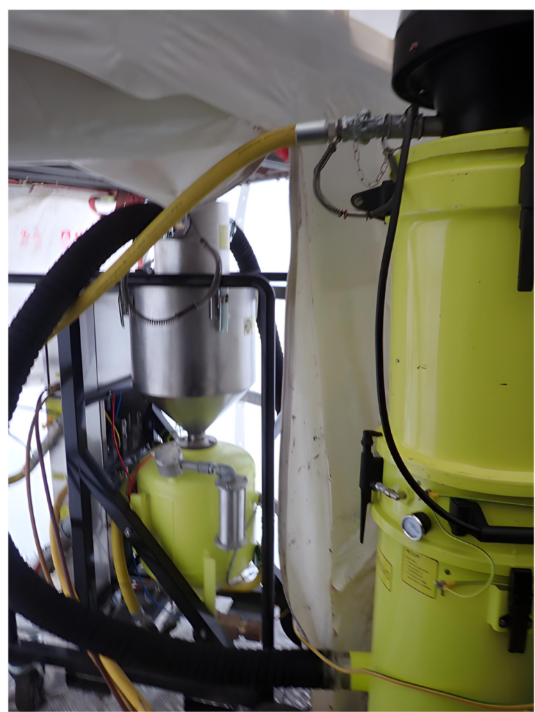 Typically, we host customers at our training center in Dordrecht, but due to the distance, we decided to visit the customer on-site. Once there, Wiebe and Bart demonstrated the functionality of the Pinovo blasting machine in a closed circuit. This setup prevents hazardous particles, such as chromium-6, from being released into the environment, which is crucial for ensuring the safety of both workers and the surrounding area.
